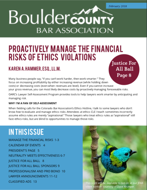Proactively Manage the Financial Risks of Ethics Violations, Feb. 2018 Boulder County Bar Association E-Newsletter